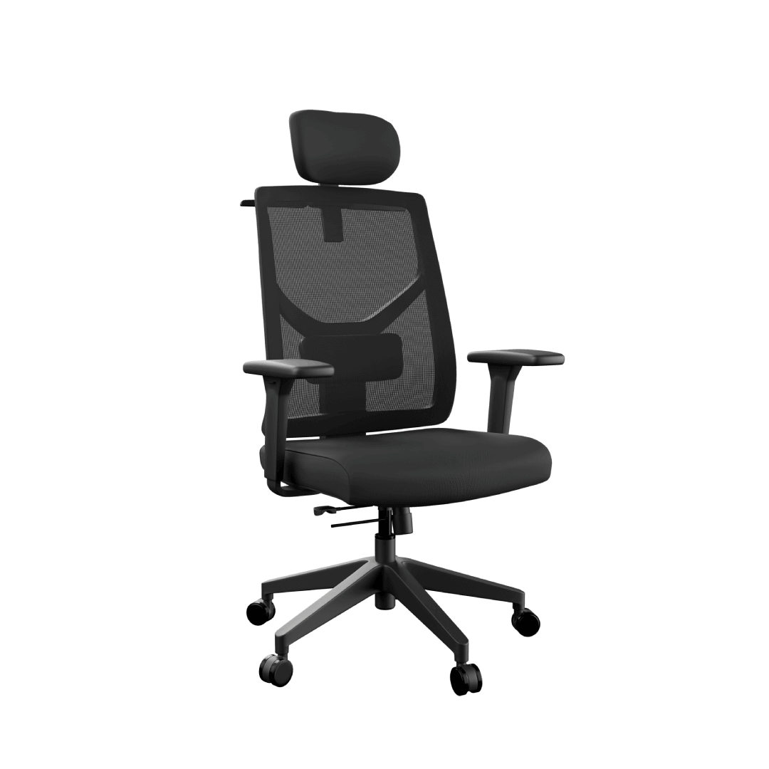 Den justerbare lændestøtte i både højde og dybde sikrer optimal støtte til den nederste del af ryggen, mens den højdejusterbare nakkestøtte giver komfort og aflastning til halshvirvelsøjlen.