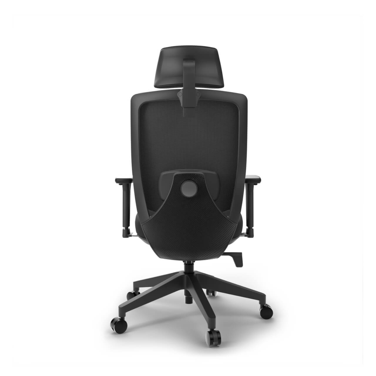 og lindrer spændinger i nakke og skuldre. Den justerbare lændestøtte tilbyder specifik støtte til den nederste del af ryggen. Det "skjoldformede" betræk med carbon-designfremhæver stolens moderne udseende og giver samtidig ekstra styrke til ryglænet.