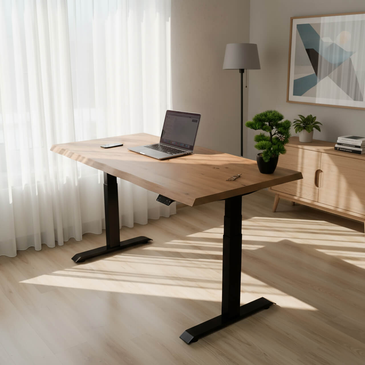 Med motorer, der automatisk ændrer positionen til stående eller siddende, kan jeg ændre denne arbejdsstil oftere og mere bekvemt.