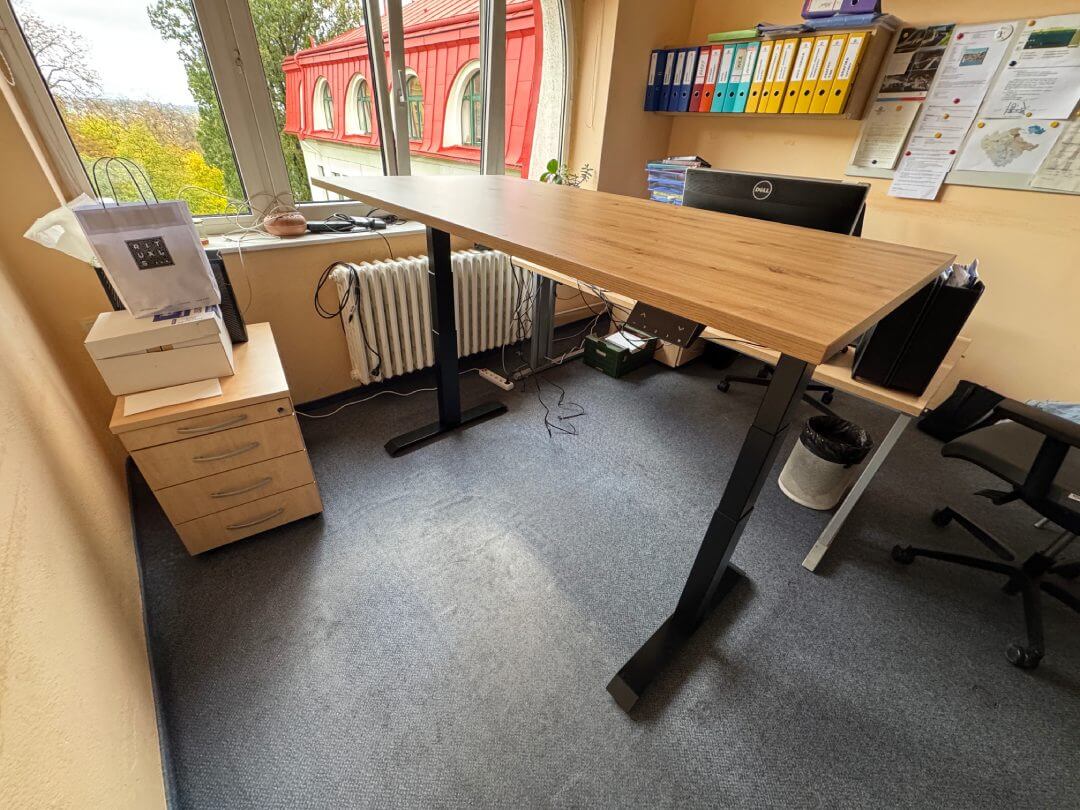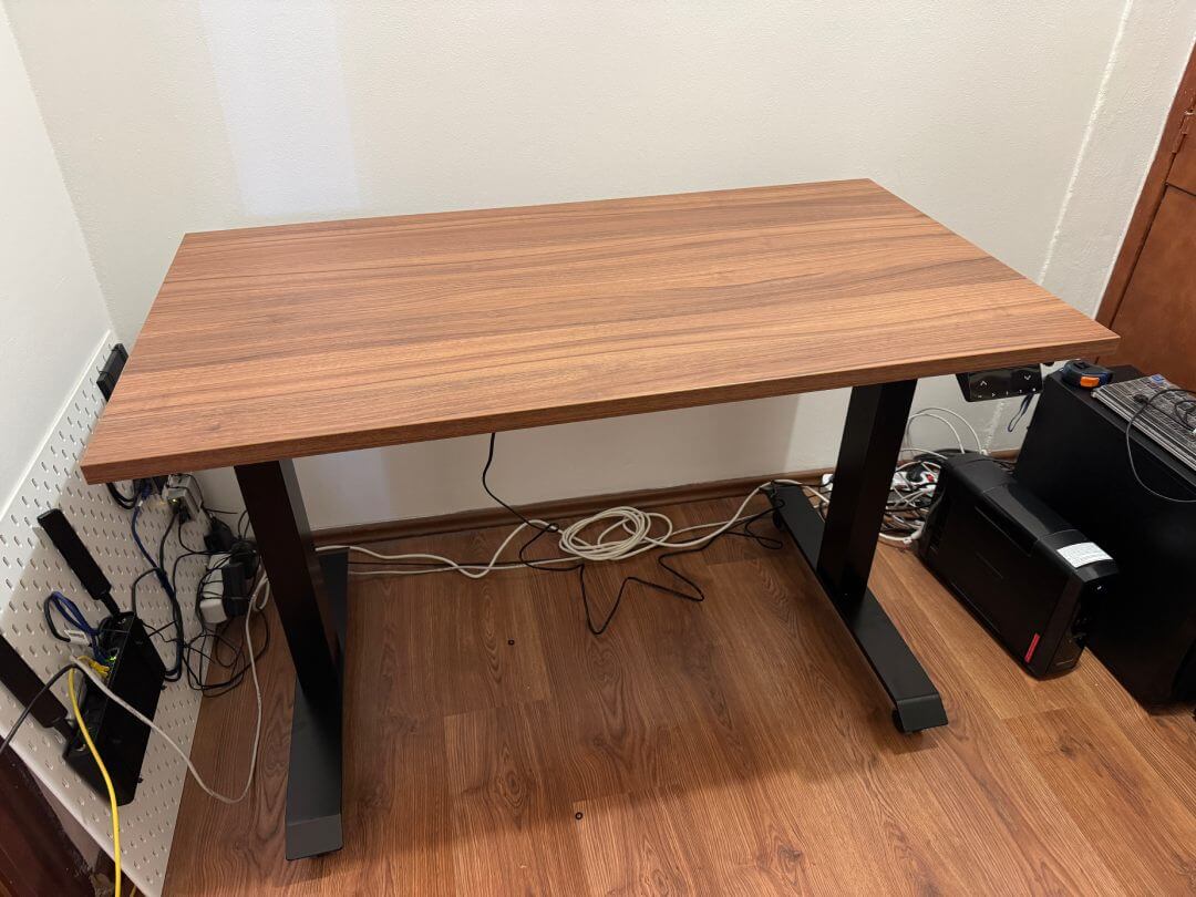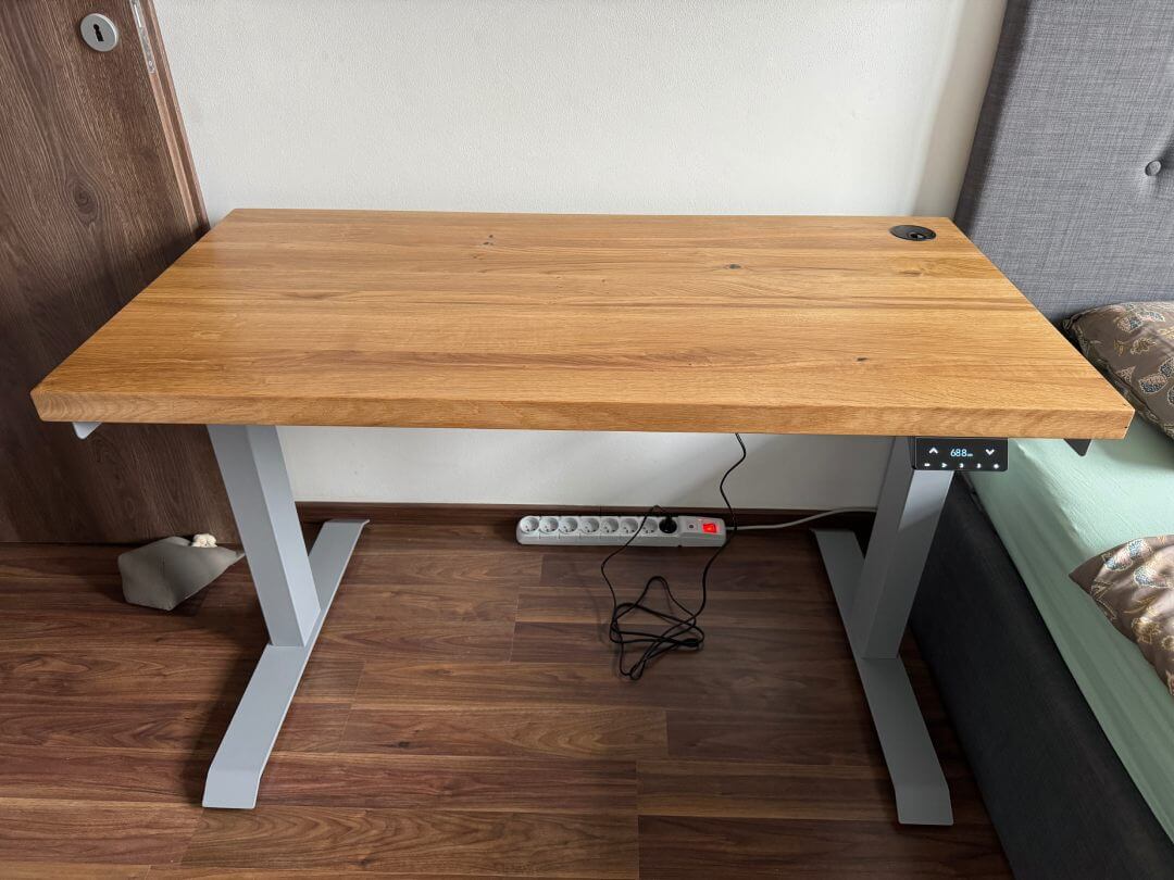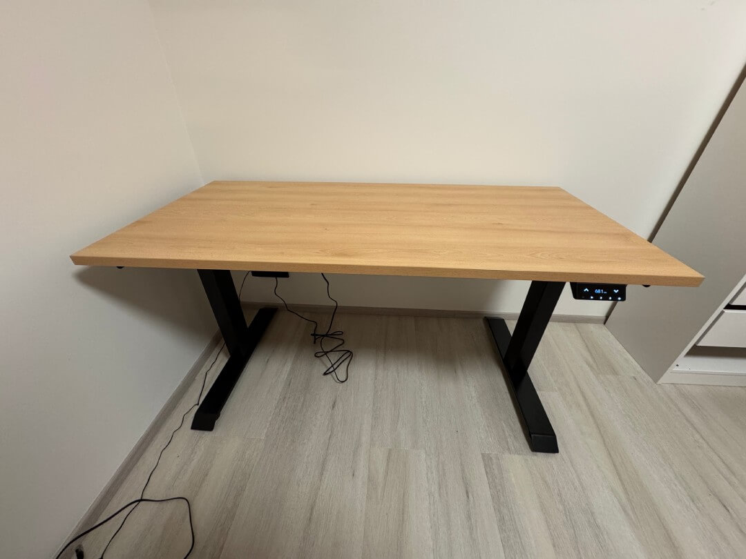 Skrivebordet forbedrer mit arbejde på en grundlæggende måde. Før havde jeg et skrivebord med justerbart håndtag uden hjul fra IKEA.