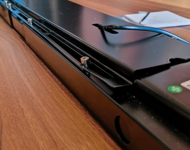 Et andet emne er indholdet af pakken. Alt er korrekt pakket og beskyttet mod skader under transport. Hver del har sin egen kasse, og der er ingen manglende mellemrum, der forhindrer, at noget bevæger sig. Bordpladen, der var pakket separat, havde også beskyttede hjørner og kanter. Bordpladen er markeret med en etiket i form af et klistermærke på den usynlige side. Muligvis fordi det kan have afsat sig på undersiden under fremstillingen af pladen.