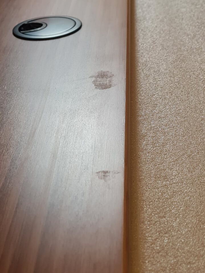 ✓ En fineret bordplade med en nydelig overflade, der ikke deformeres og holder længe.