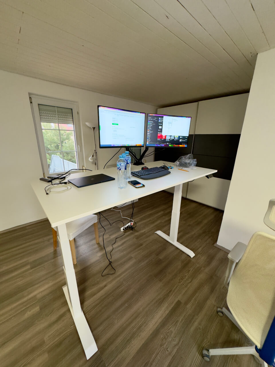 Skrivebordet forbedrer mit arbejde på en grundlæggende måde. Før havde jeg et skrivebord med justerbart håndtag uden hjul fra IKEA.