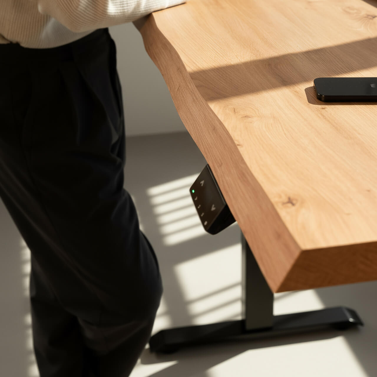 Med motorer, der automatisk ændrer positionen til stående eller siddende, kan jeg ændre denne arbejdsstil oftere og mere bekvemt.