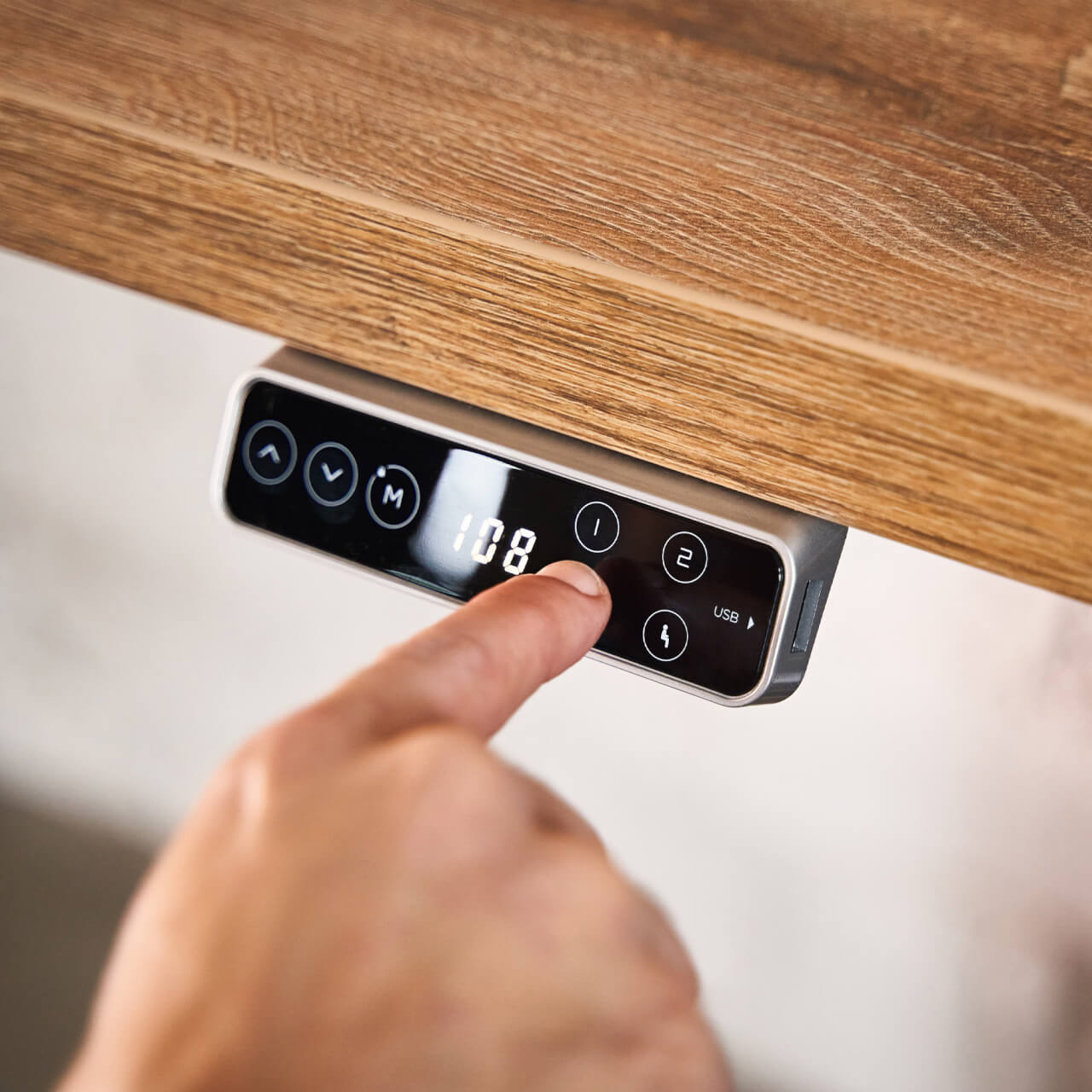 ✓ Børnelås, der blokerer betjeningen og forhindrer utilsigtede ændringer af bordhøjden.