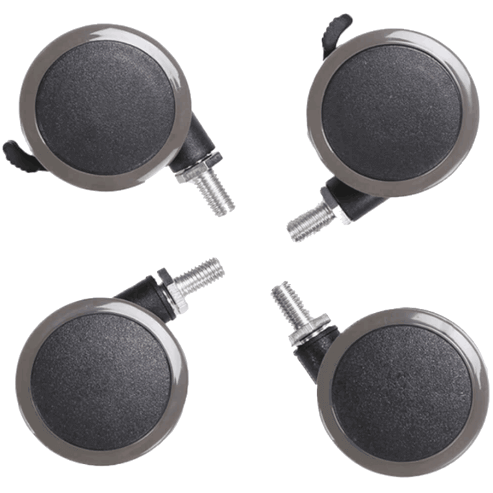 Flyt nemt dit hæve sænkebord hen, hvor du vil have det. Du kan skifte plads flere gange om dagen. Fodbremsen forhindrer uønsket udrulning. Hjulene kan skrues på meget hurtigt