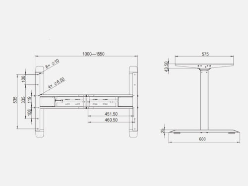 Bordet er stabilt og vakler inte, og bordpladen holder formen selv i den højeste position. Du kan lægge op til 100 kg på den ene side af bordet, og det stadig holder ud at have en plan overflade. Du behøver ikke at bekymre dig om, at den svajer ustabilt i højden..
