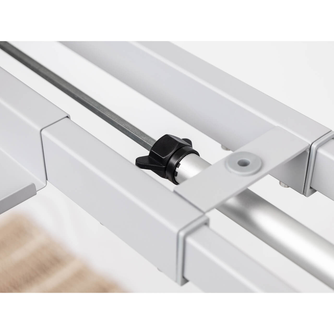 Bordet er stabilt og vakler inte, og bordpladen holder formen selv i den højeste position. Du kan lægge op til 100 kg på den ene side af bordet, og det stadig holder ud at have en plan overflade. Du behøver ikke at bekymre dig om, at den svajer ustabilt i højden..
