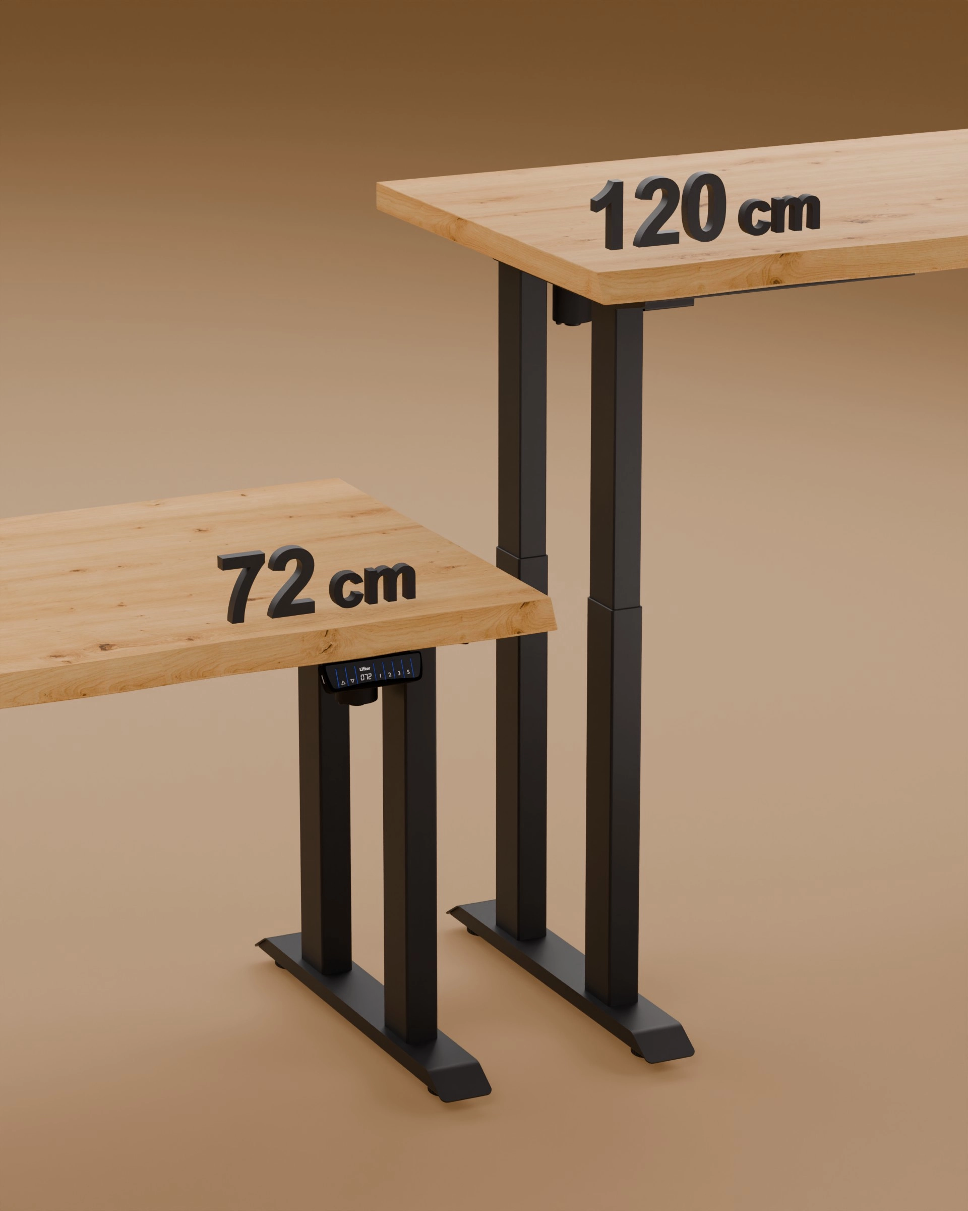 Højdeintervallet på 72–120 cm gør det nemt at indstille bordet efter dine behov. Overgangene mellem positionerne foregår jævnt og uden ubehagelige ryk.