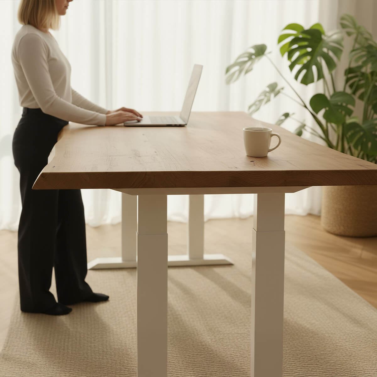 Mens de fleste hæve-sænkeborde står på to ben, tilbyder Liftor Rock en konstruktion med fire solide støttepunkter. Det gør det til det eneste bord i sin klasse, der kan garantere 100 % stabilitet i enhver højde. Ingen vaklen, ingen kompromiser – kun en jævn og urokkelig arbejdsflade, du kan stole på i enhver situation.