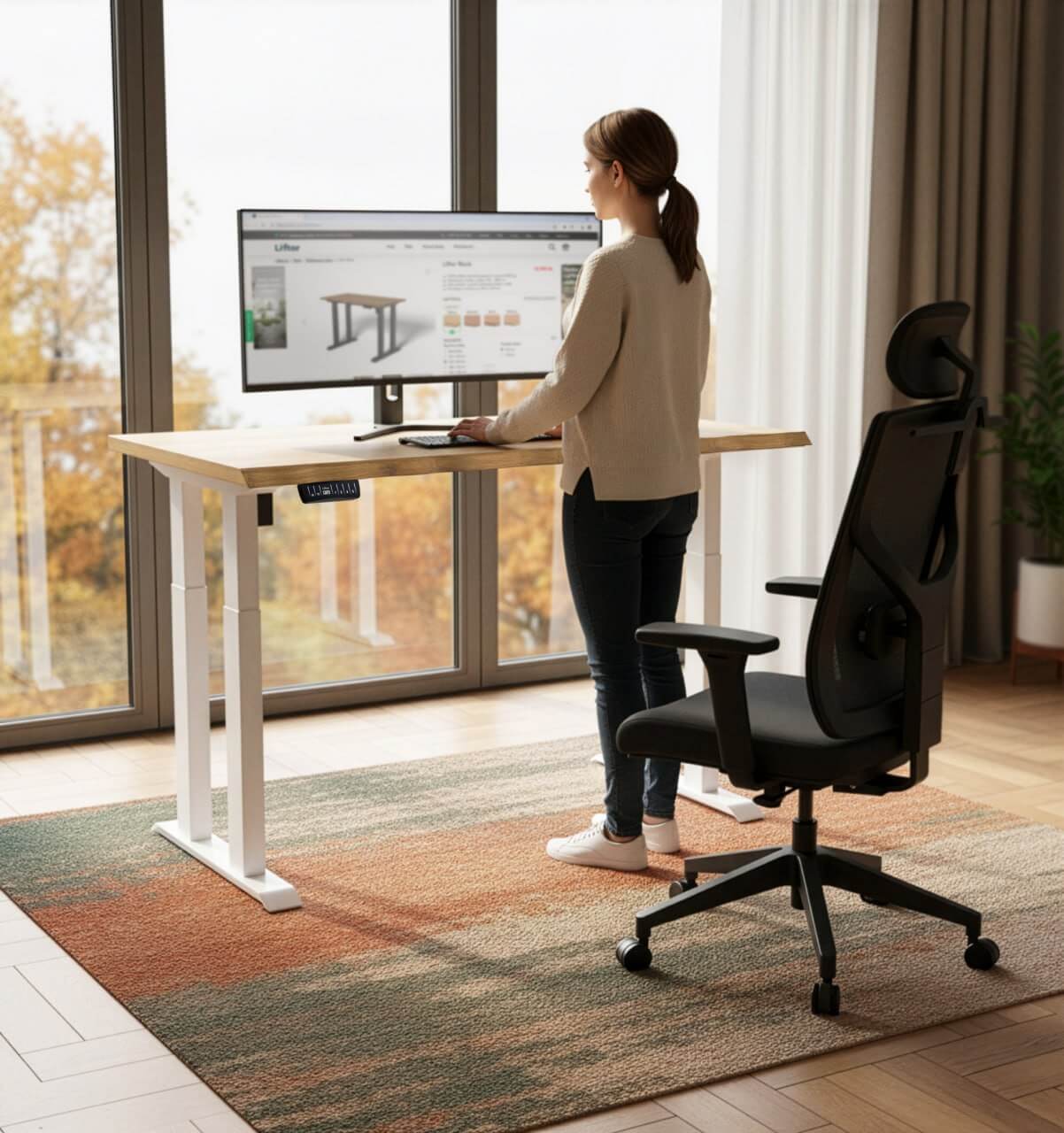 Mens de fleste hæve-sænkeborde står på to ben, tilbyder Liftor Rock en konstruktion med fire solide støttepunkter. Det gør det til det eneste bord i sin klasse, der kan garantere 100 % stabilitet i enhver højde. Ingen vaklen, ingen kompromiser – kun en jævn og urokkelig arbejdsflade, du kan stole på i enhver situation.