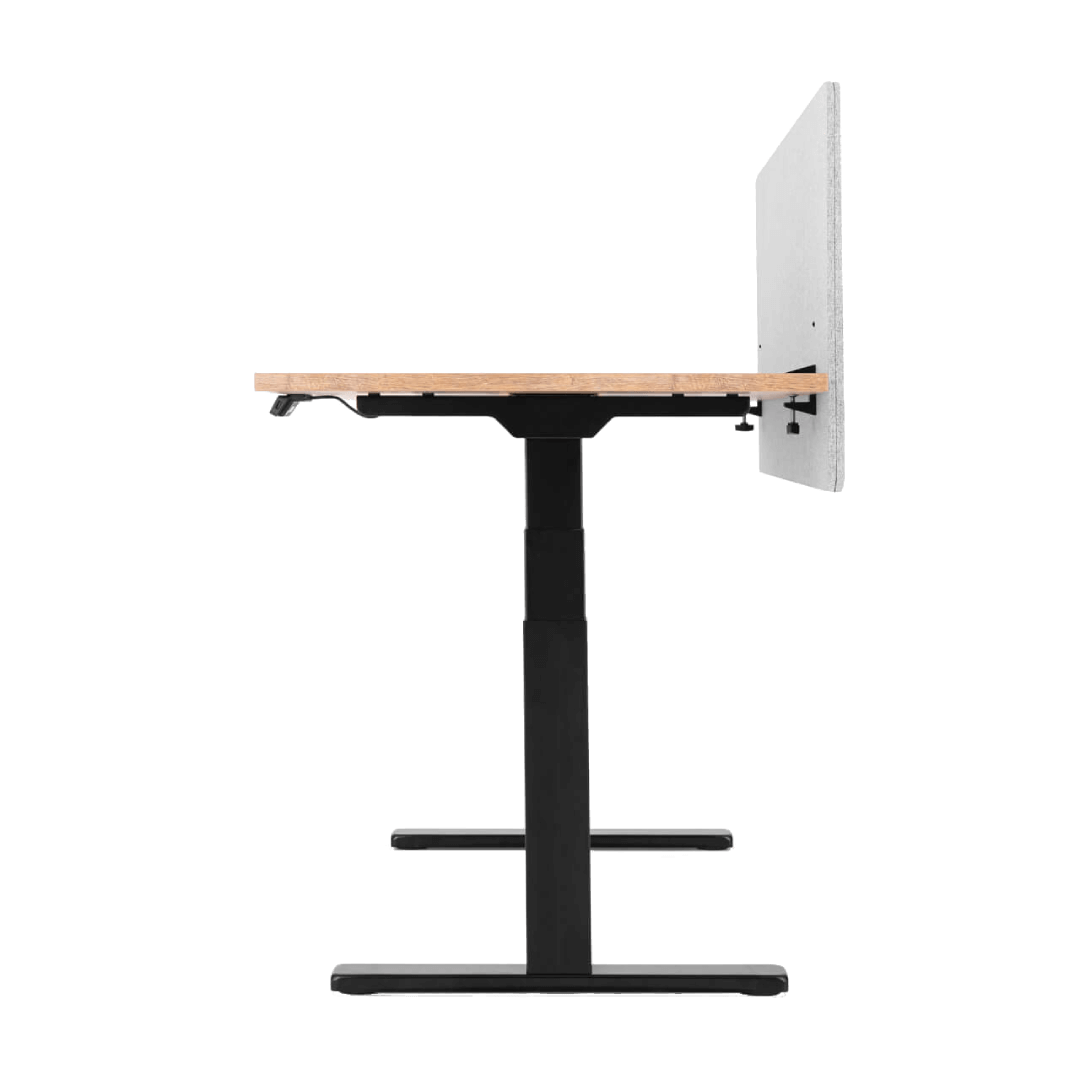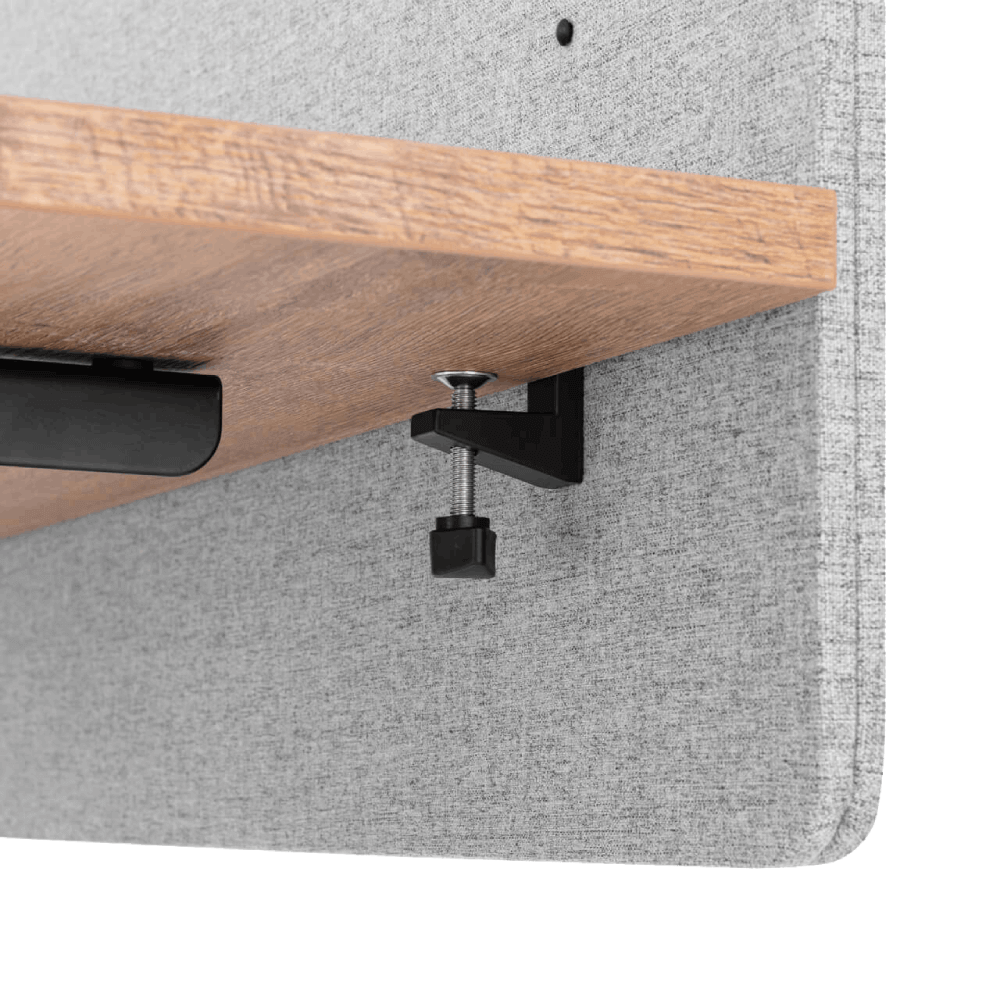 Skærmen består af en blanding af PET og tekstilmaterialer, der er kendt for deres fremragende lydabsorberende egenskaber. Det dæmper lyden effektivt og bidrager til et roligt arbejdsmiljø, hvor du lettere kan holde fokus. Den grå farve giver skærmen et moderne udseende, der passer perfekt ind i enhver indretning, både på kontoret og i hjemmekontoret.
