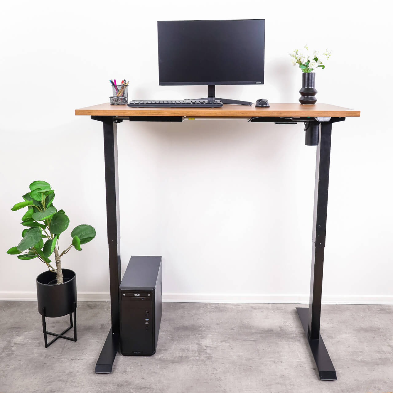 Bordet er stabilt og vakler inte, og bordpladen holder formen selv i den højeste position. Du kan lægge op til 70 kg på den ene side af bordet, og det stadig holder ud at have en plan overflade. Du behøver ikke at bekymre dig om, at den svajer ustabilt i højden.