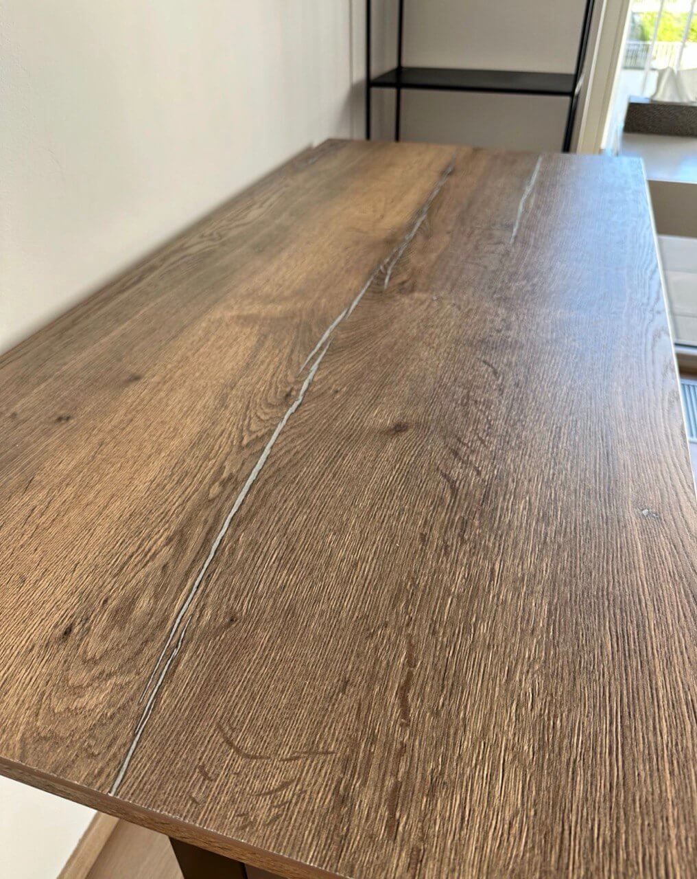 ✓En fineret bordplade med en nydelig overflade, der ikke deformeres og holder længe.